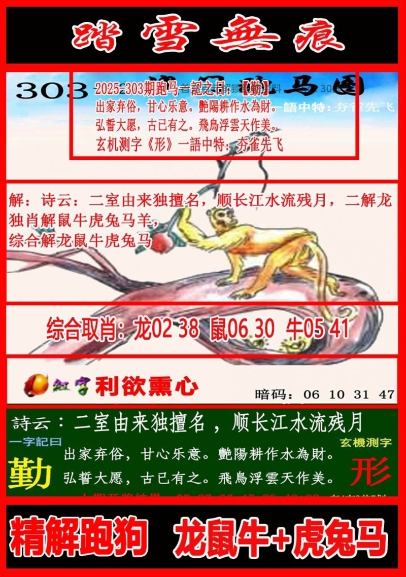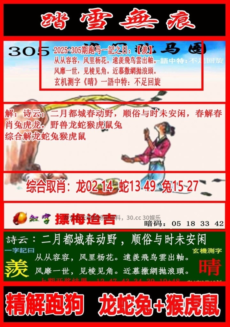 300期今期鸡马猪出特,一别朱门三四春开虎40
