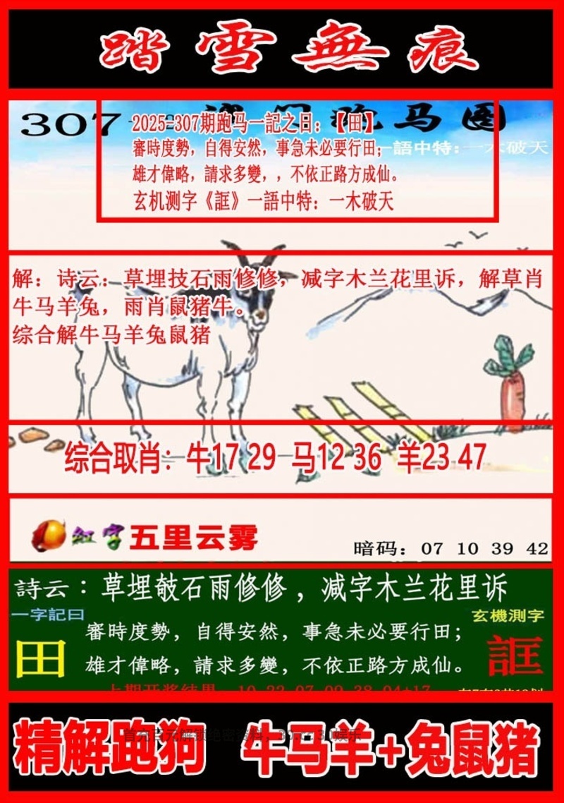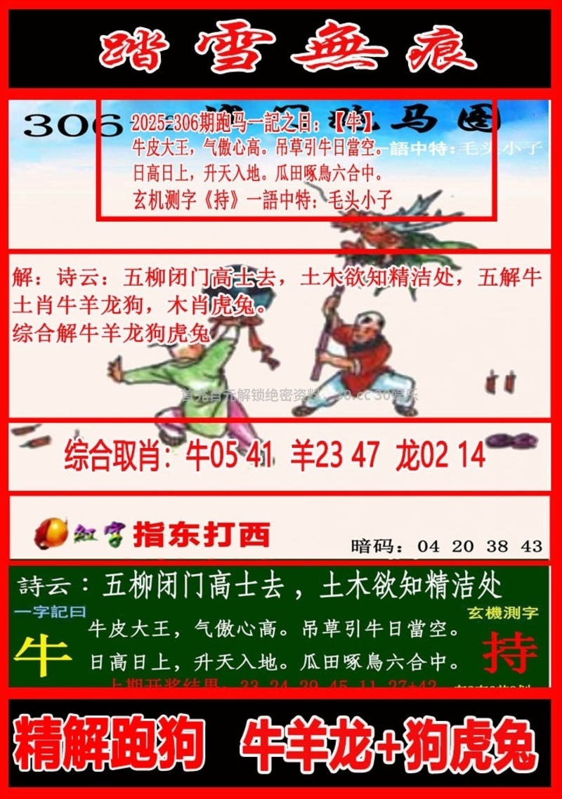 306期【羊狗龙牛鼠虎蛇鸡马】开:牛17准